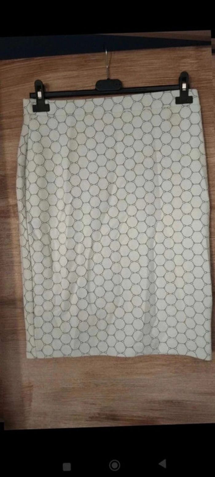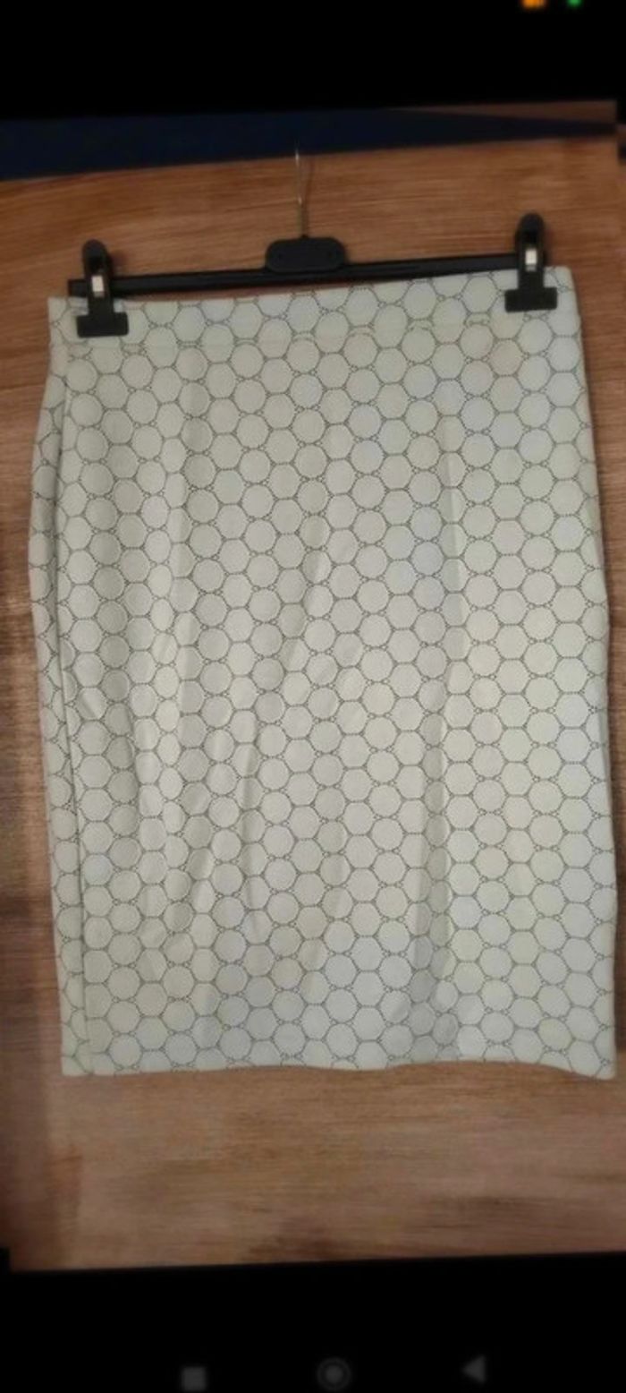 Jupe leota taille m strech cercles blanc grise Longueur 59 cm Largeur a plat 39 cm Strech