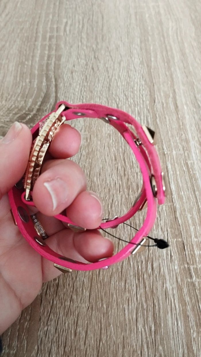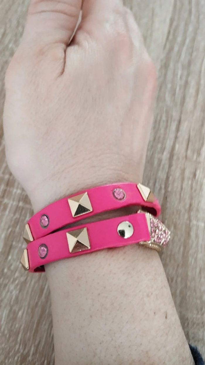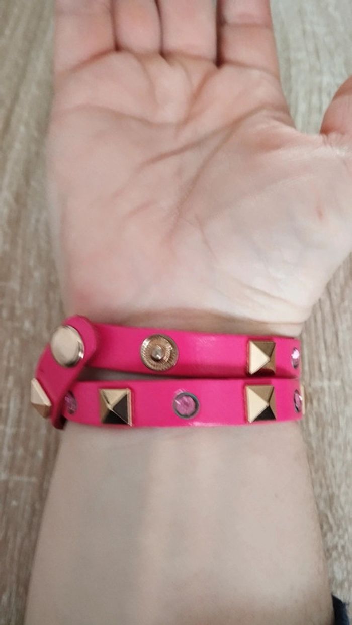 Bracelet pressions rose clous doré fantaisie femme - photo numéro 8