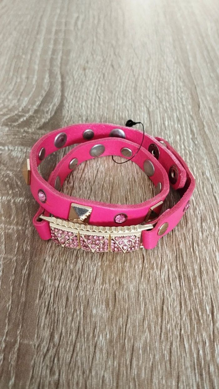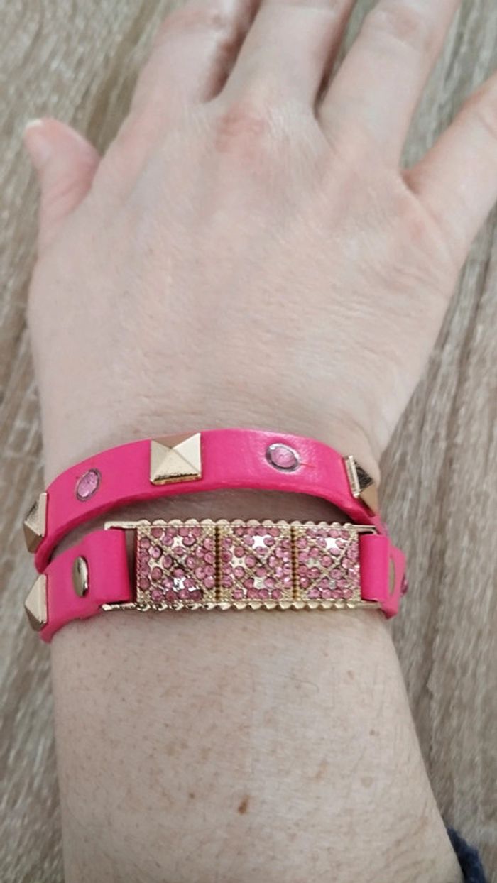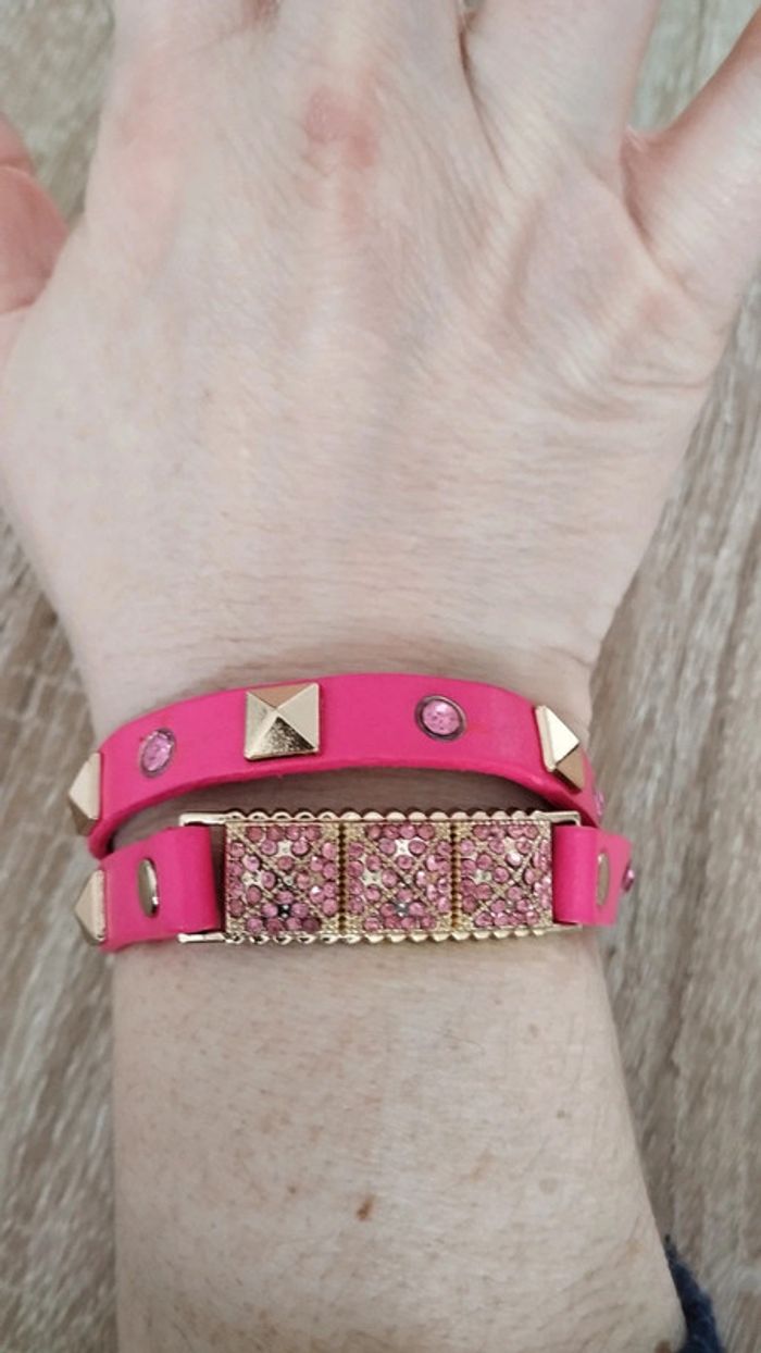 Bracelet pressions rose clous doré fantaisie femme - photo numéro 1