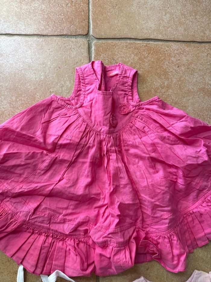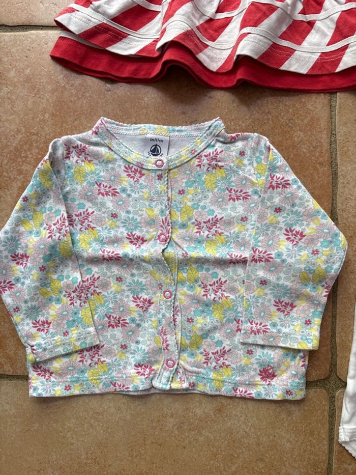Lot de 6 vêtements en 6 mois comprenant: 1 robe Segent Major, 1 robe week end à la mer, 1 gilet en coton petit bateau, 2 bodies petit bateau etv1 ensemble Kilbaloo.