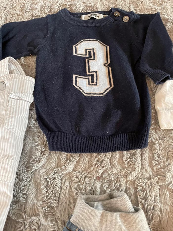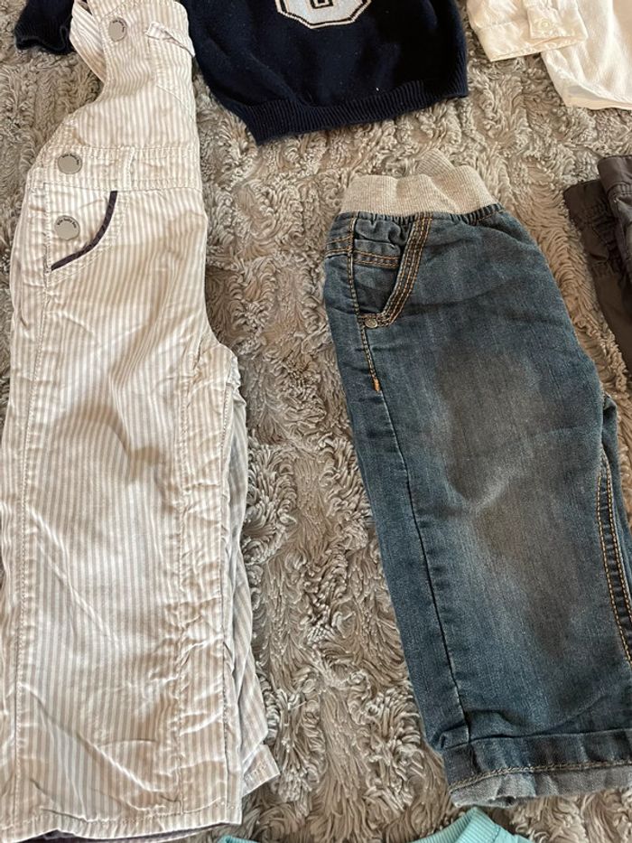 lot de 9 vêtements Tape à l œil en 6 mois comprenant: 1 pull, 1 chemise, 2 salopette, 3 pantalons, 2 tee shirt manches longues. peut être vendu séparément sur demande.