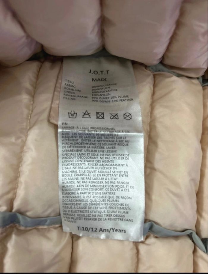 Doudoune Jott rose pale modèle Madi en 10 ans