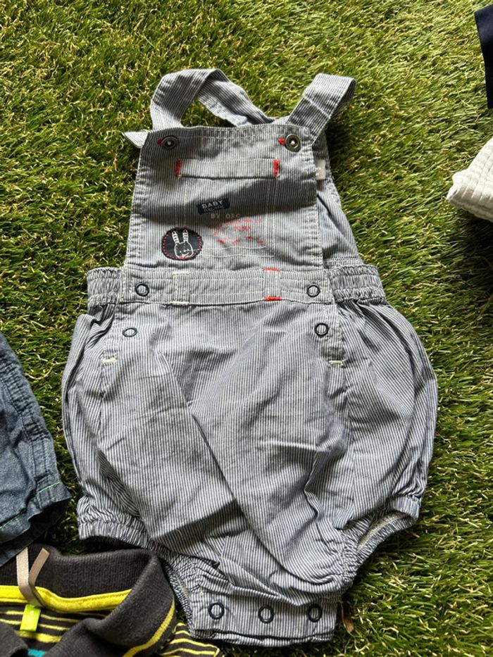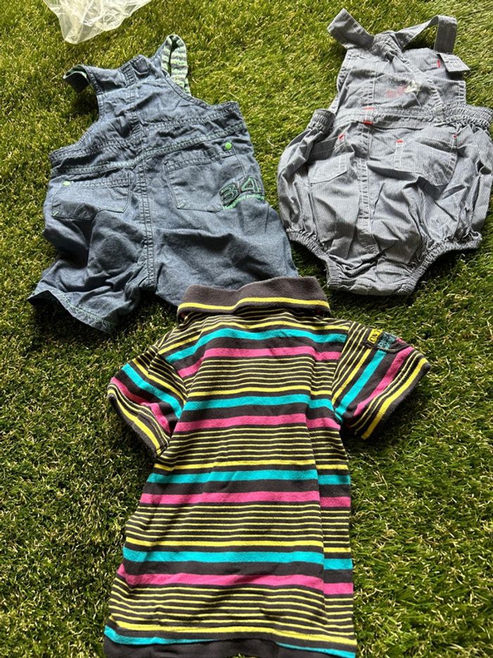 Lot de 3 vêtements Orchestra en 9 mois comprenant 2 salopettes et 1 polo.