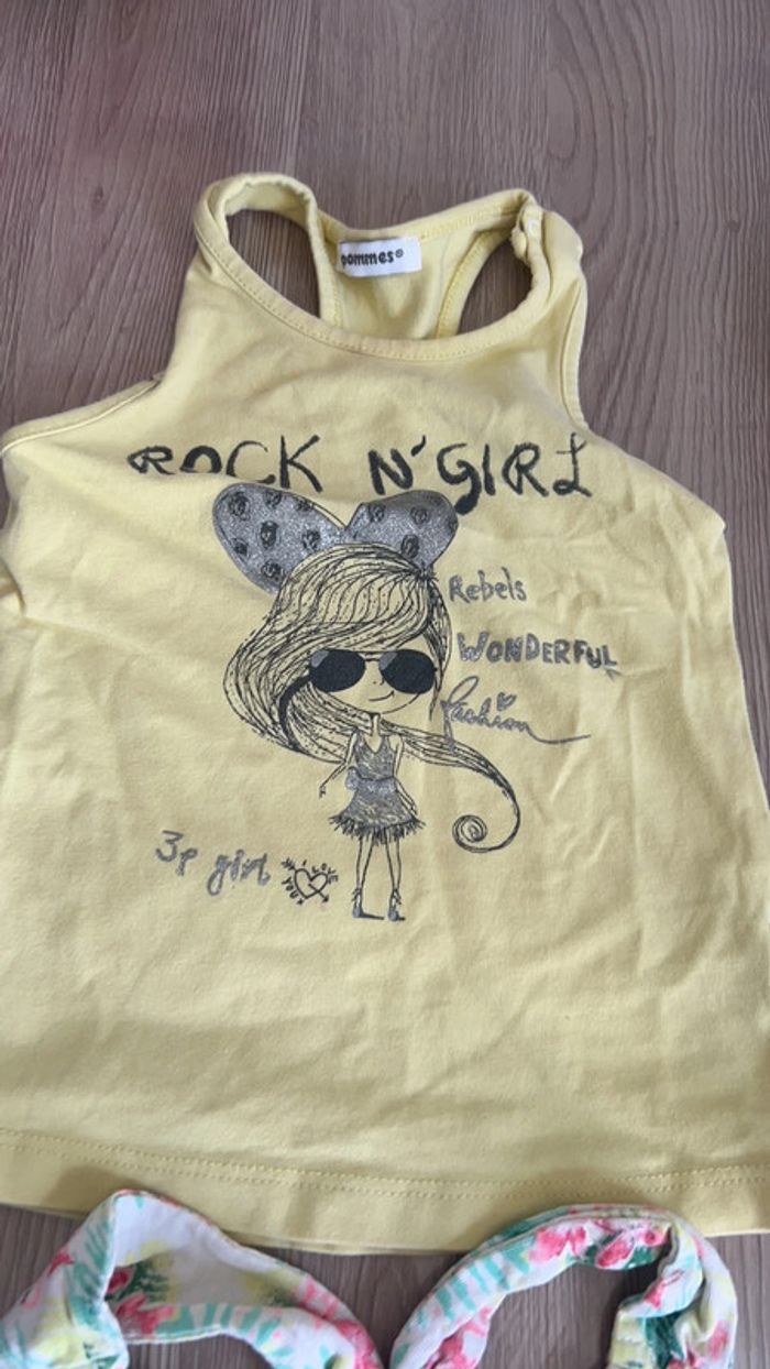 Lot de 4 tee shirt en 18 mois, 2 tee shirts Kiabi, 2 débardeurs 3 pommes et babyfoot Gemo
