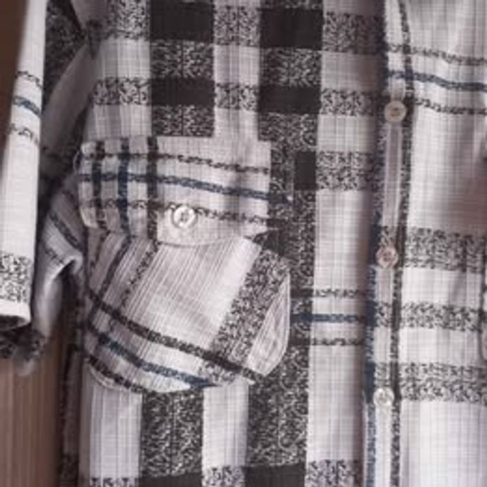 Chemise manches courtes homme Fermeture avec boutons Motifs sur les manches Marque Max Men Matières 65% coton et 35% polyester Couleurs bleu, noir et gris Motifs rayures Taille M Avec 3 poches 2 à boutons et 1 zipper Légèrement transparent Dimensions approximative : 76cm de long : largeur sous aisselles 54cm : longueur de manches 24cm : largeur d'épaules 50cm En très bon état