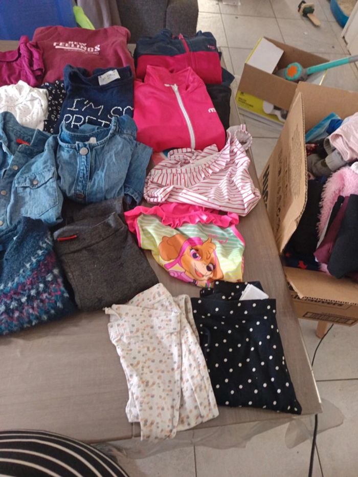 #venterose5ans 2 jogging 2 pièces its 2 maillot de bain 1 pièces dont 1 pat patrouille 4 leeging 1 pantalon habillé 2 jeans 3 robes 2 sous pull 2 Tee-shirt manche courte 1 débardeur 1 pull 2 short 6 tee-shirt manche longue 1 pyjama 2 pièces neuf 2 jeans