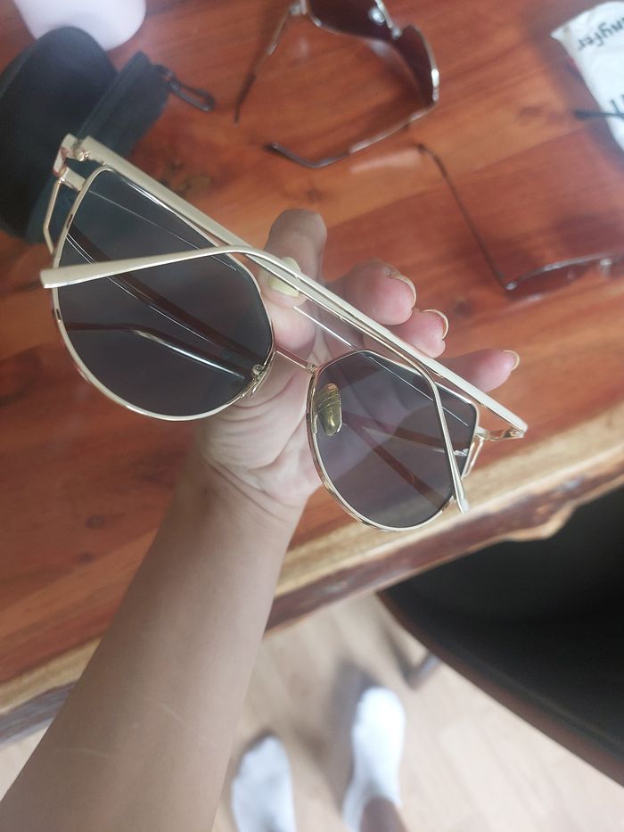 Lunette de soleil neuve noires et doré Sans marque Envoi rapide et soigné N'hésitez pas à me contacter si vous avez des questions 😀