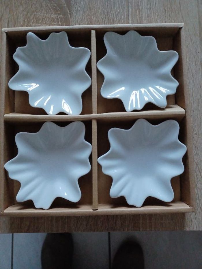 4 petites assiettes pour apéritif neuves dans boîte d'origine. (Couvercle un peu jauni)
