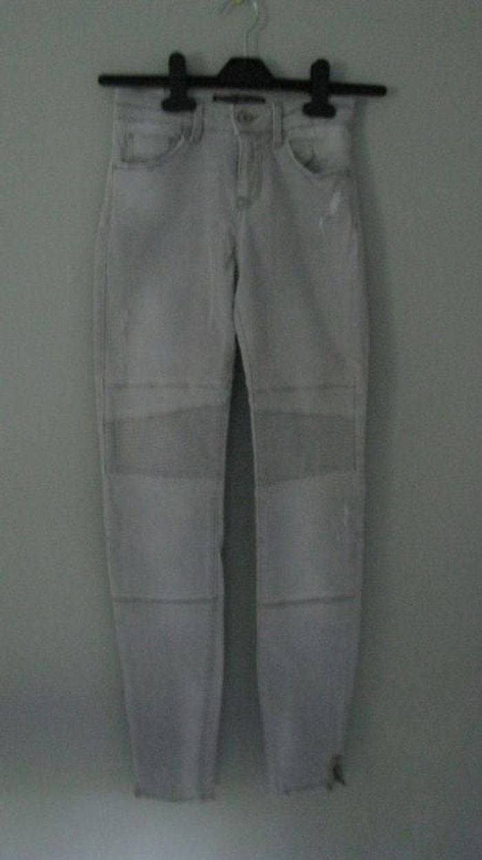 jean skinny gris tres clair bershka zip au cheville.taille basse