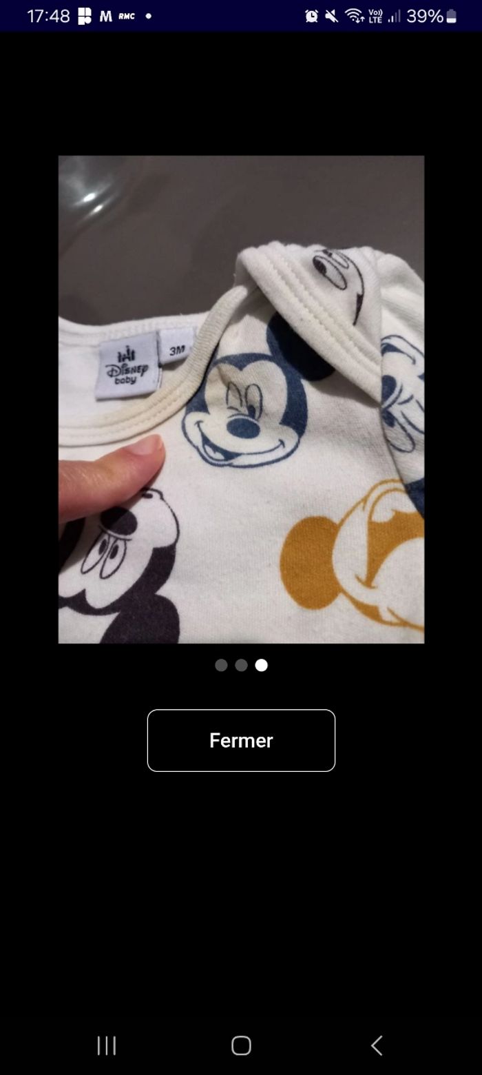 - body manche longue Mickey -Tres légère tâche jaune sur le col ( voir photo) - à enfiler par la tête #bébé3mois
