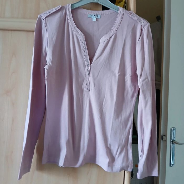 Polo femme Zamba Taille 1 Vieux rose Manches longues Très bon état Longueur 57 cm Largeur 38 cm