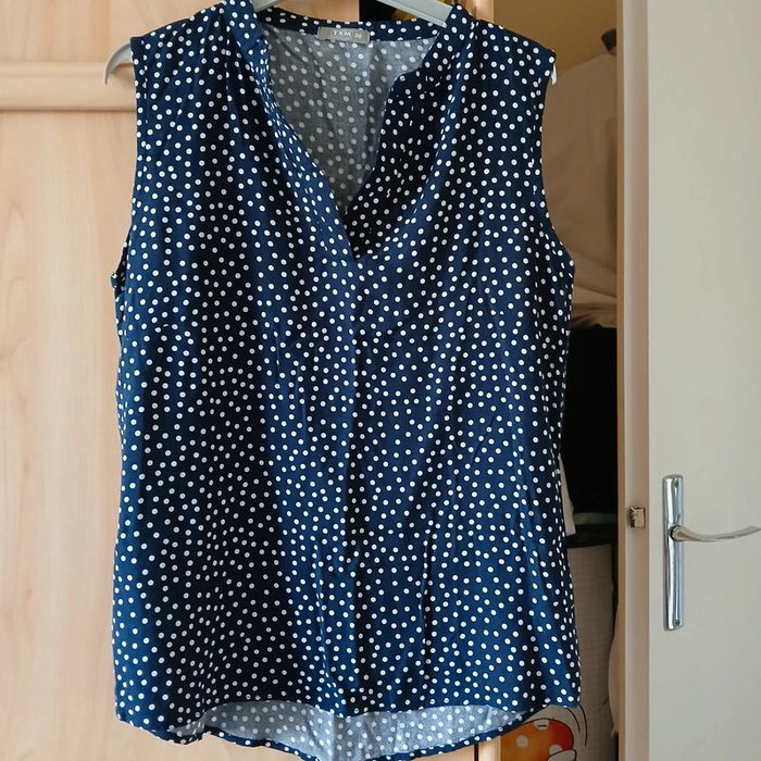 Haut femme Taille36 TXM Fashion Bleu marine à pois Longueur 64 cm Largeur 36 cm