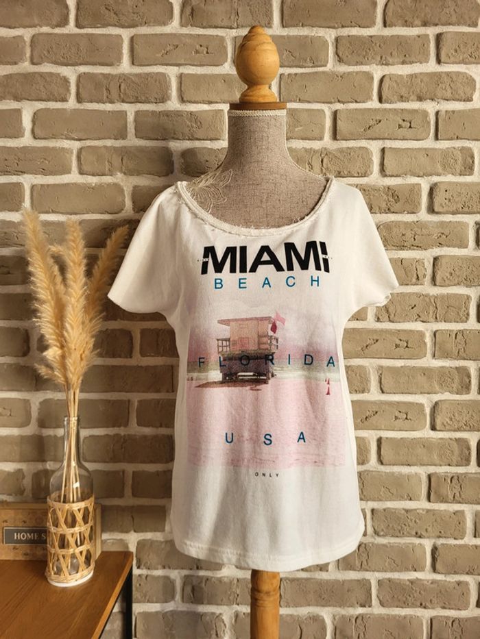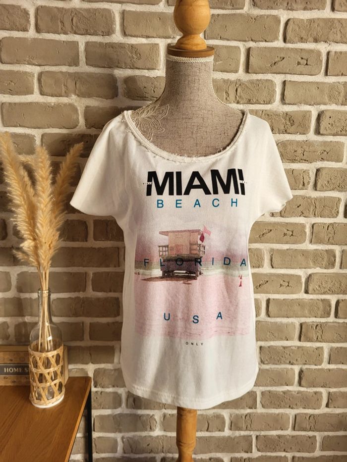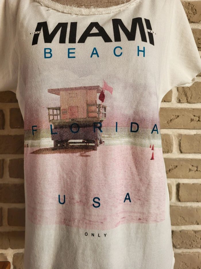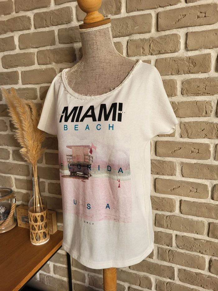 Haut à manches courtes Only blanc imprimé Miami Beach Florida USA - photo numéro 1
