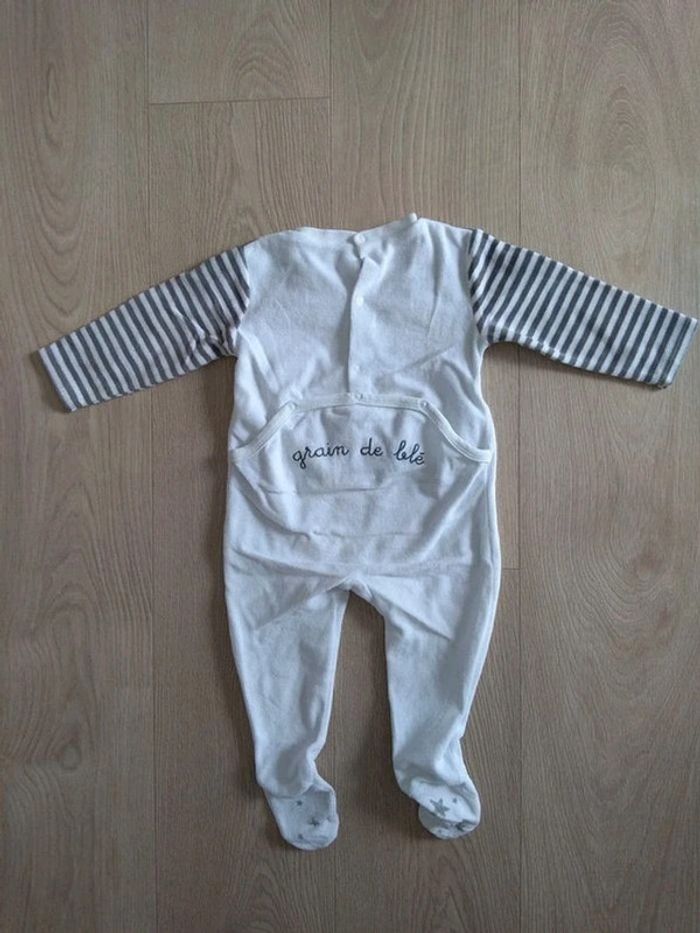 Dors bien blanc et rayé gris tête animal Motif étoile pied Écriture "grain de blé "sur les fesses #pyjama #velours #12mois #garçon Retrouvez tous mes articles garçon 12 mois en cliquant sur ce lien : #lolamalo50bebegarçon12mois