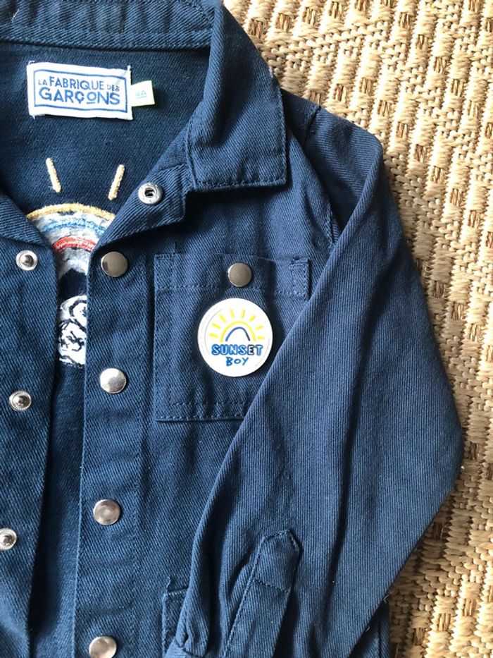 Chemise bleue marine / veste légère en très bon état Peu portée Taille 4 ans Marque la fabrique des garçons Avec pressions