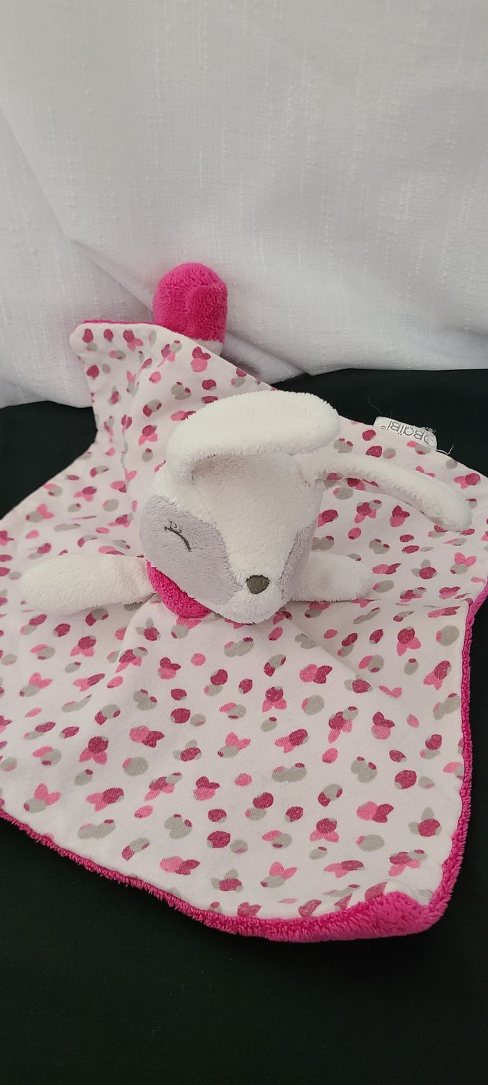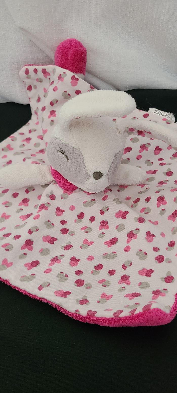 Doudou plat lapin blanc rose gris OBAIBI - photo numéro 4