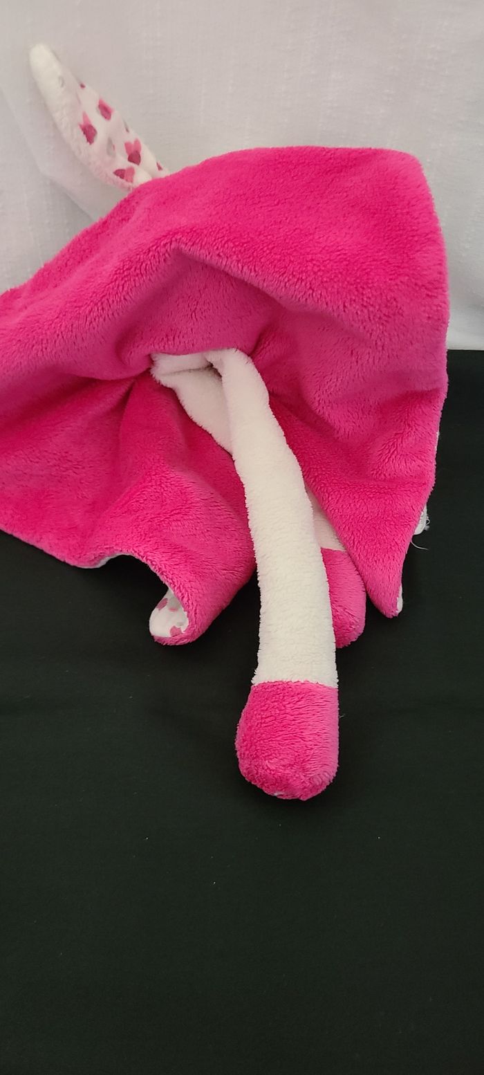 Doudou plat lapin blanc rose gris OBAIBI - photo numéro 5
