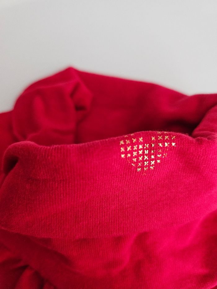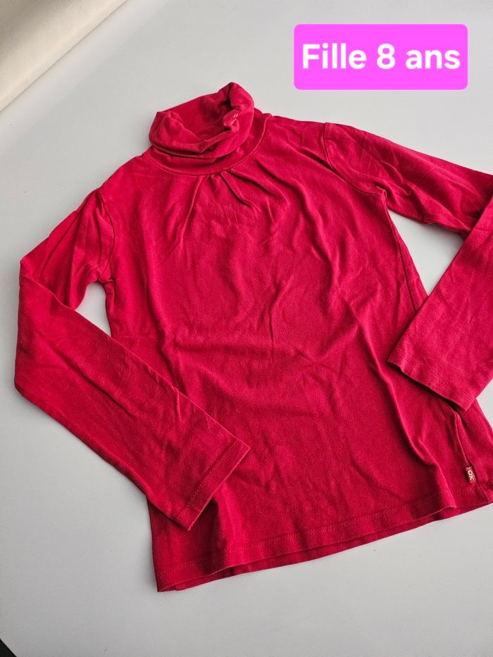 Sous pull col roulé, manches longues. Rouge avec cœur doré sur le col. Marque: Okaidi Taille : 8 ans