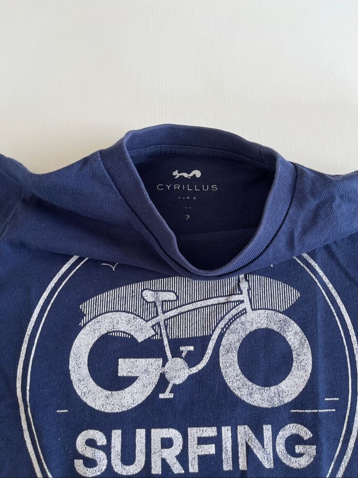 T-shirt Go Surfing coloris bleu marine, 100% coton. Marque Cyrillus. Taille 3 ans - 94