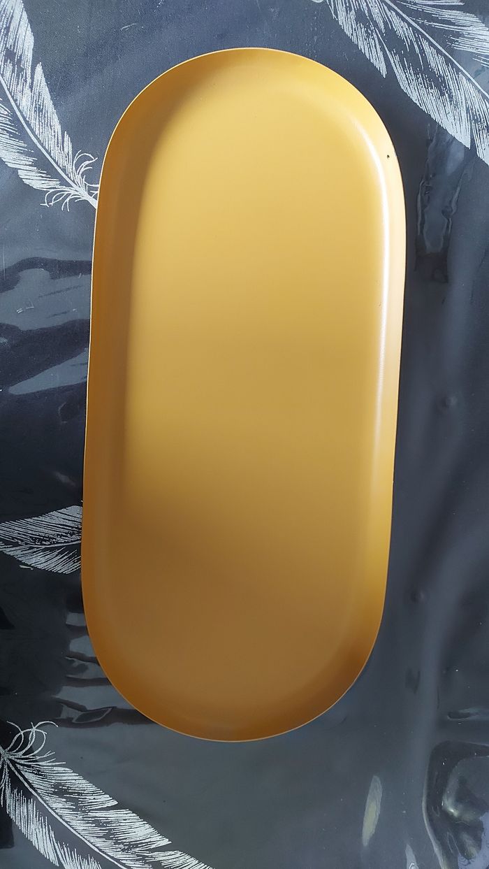 Plateau ovale en metal, orange L 34 x l 15,5 cm Neuf Un léger coup sur le bord