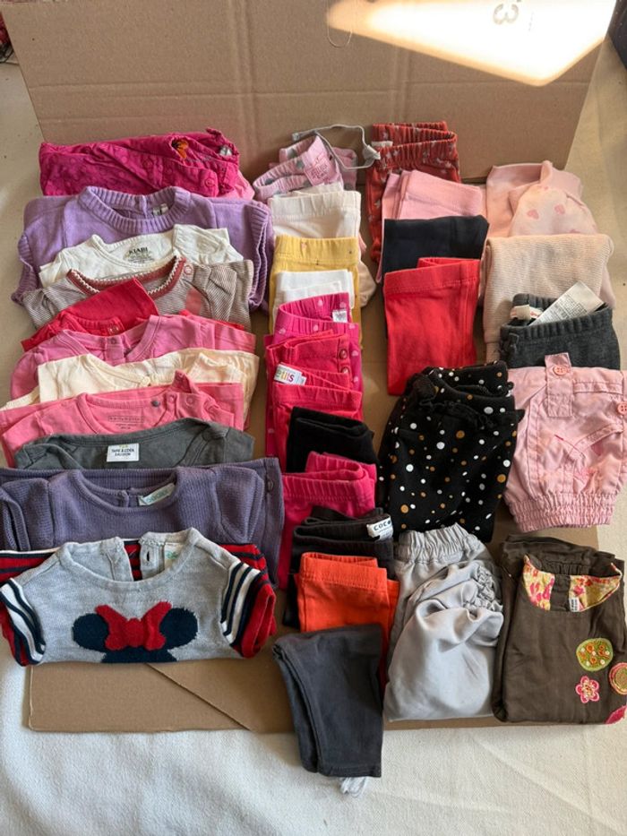 Vends lot de 33 vêtements bébé fille 3 mois Robe pull été manche courte TEE shirt léger manche longue Legging Pantalon type baggy Salopette Marque Kiabi, orchestra, belle button, tape à l’œil, Disney, Obaibi, la redoute… Lot AC