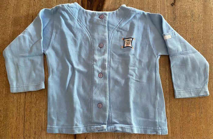 Gilet 23 mois Deux petite tache devant voire photo 100% coton 4 boutons pour l’ouverture.