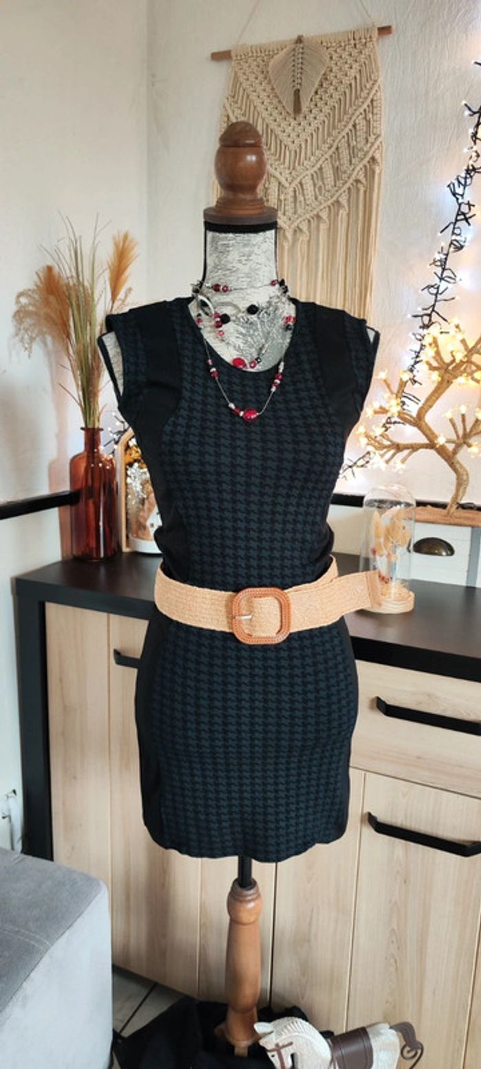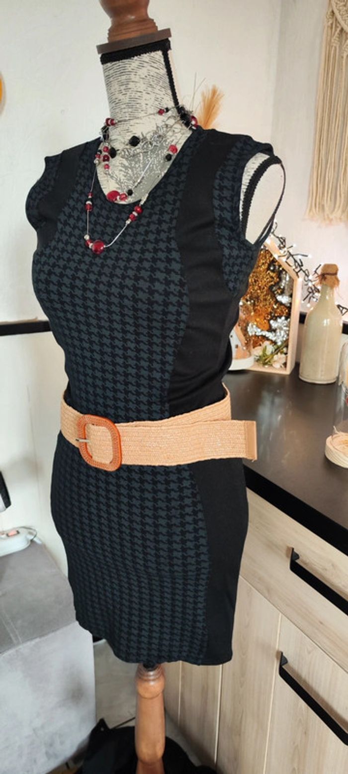 ➡️👍🏼 Bonjour ☺️ ⚠️ Merci de lire mon profil avant tout achat 🛍️ Articles neufs ou avec étiquette 🏷️ en général NON NÉGOCIABLE MÊME EN LOT 📦 Bienvenue dans mon dressing ,abonnez vous ✔️ Superbe robe tee shirt long élasthanne dessin motif imprimé pied de poule et côté noir pr un effet amincissant petite manches épaules de couleur gris et noir À porter avec veste en jean blazer chaussures à talons bottes pour un style chic ou décontracté avec sneakers basket gilet