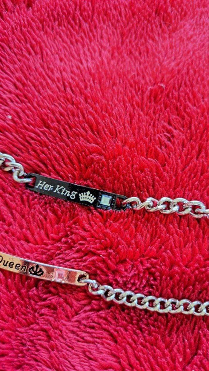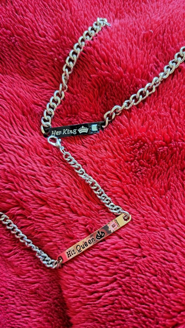 Lot de 2 gourmettes Pour couple Son roi Sa reine Non portées #gourmette #cadeau #couple #bijoux
