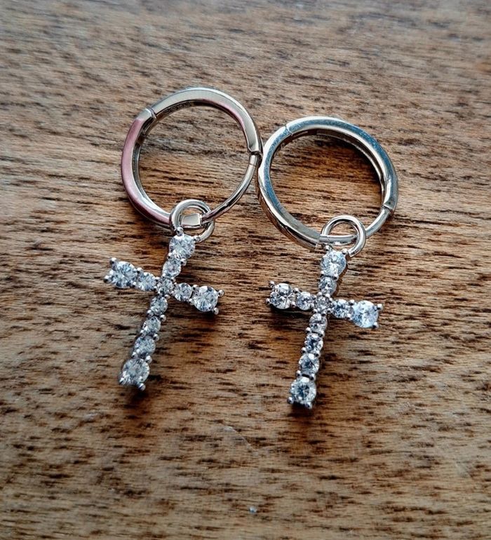 Boucles d'oreilles croix Avec des brillants Non portées 🚨 pas d'envoi avec vinted go #bouclesdoreilles #croix