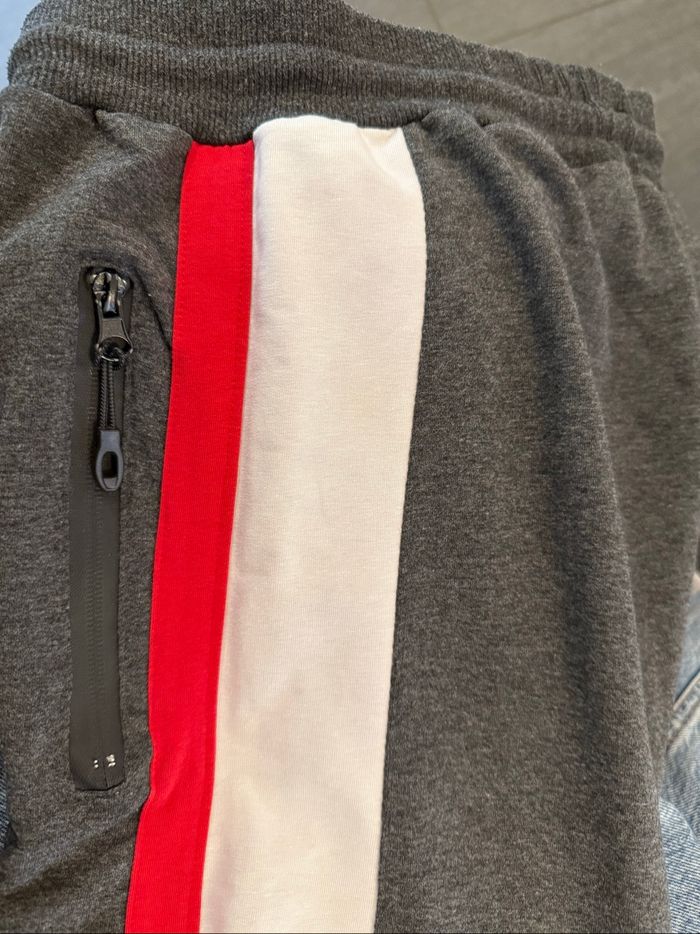 Pantalon de survêtement Adidas - Taille M - Pantalon de survêtement Adidas en très bon état, parfait pour le sport ou un look décontracté. 🔹 Taille : M 🔹 Matière : 70% coton — doux et agréable à porter 🔹 Ceinture élastique pour un maintien confortable 🔹 Poches zippées latérales + 1 poche arrière 🔹 Chevilles ajustées avec élastique 🔹 Coupe confortable et ajustée, idéale au quotidien