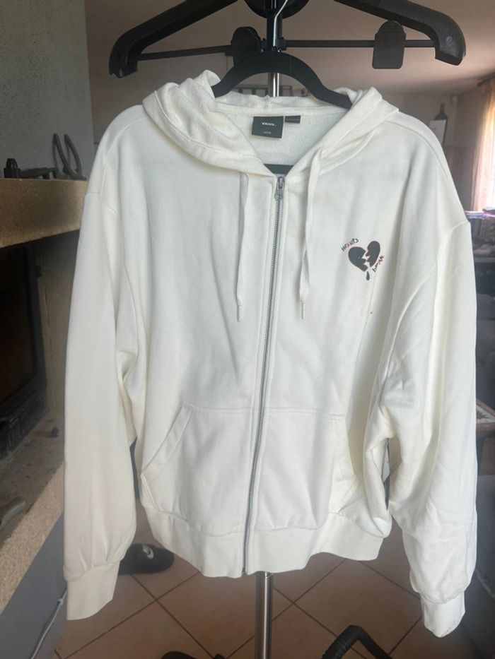 Sweat-shirt zippé Ecru Taille L Inscription dos