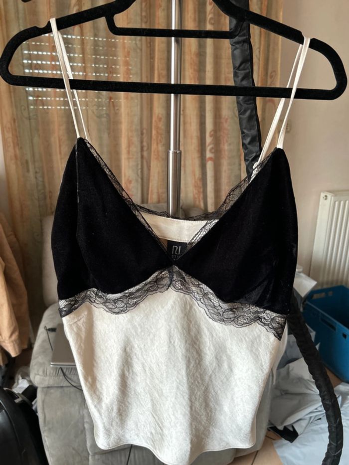 Caraco beige et poitrine velours noire - photo numéro 1