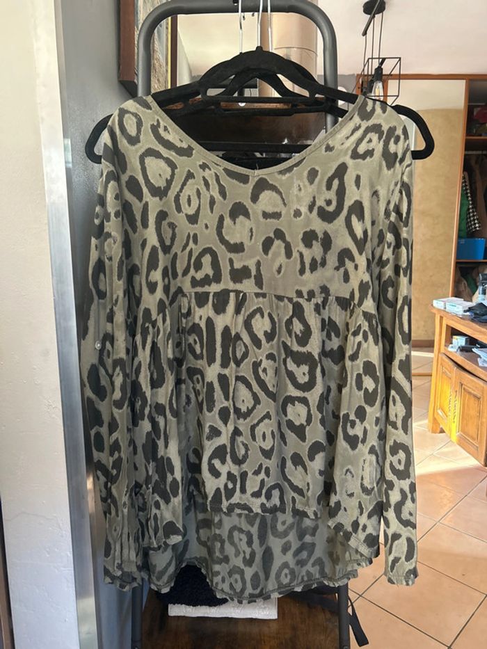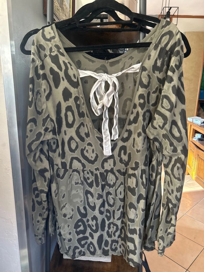 Blouse manches longues Made in Italy Taille unique Kaki léopard Noeud dans le dos