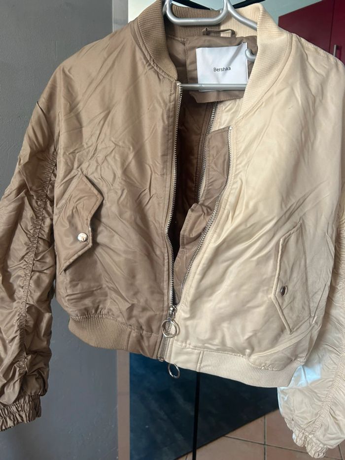 Blouson Bershka Bomber’s Beige et kaki Fermeture éclair devant et derrière Taille XL