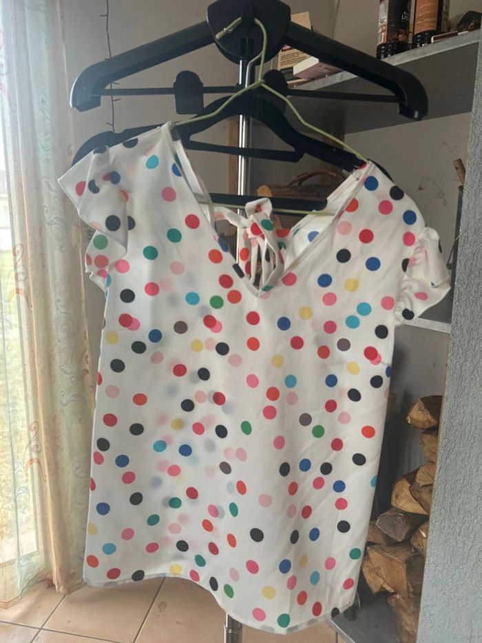 Tunique Pois Noeud dans le dos Manches à volants Convient jusqu’au 42