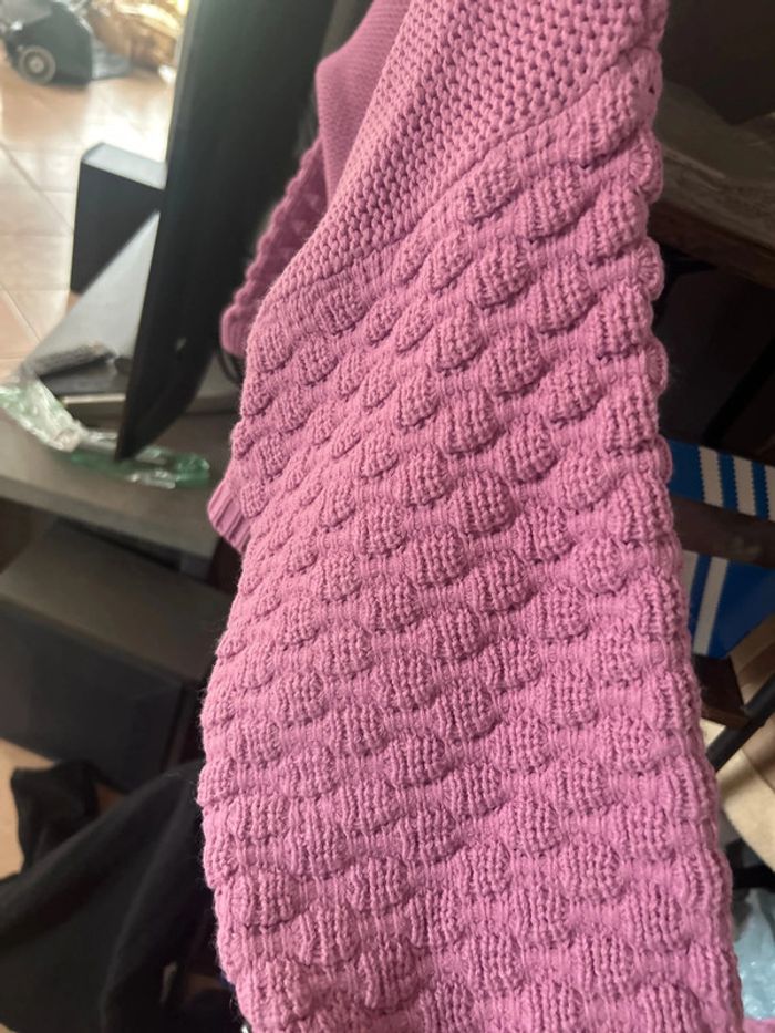 Pull col V Rose Manches gaufrées Taille 40