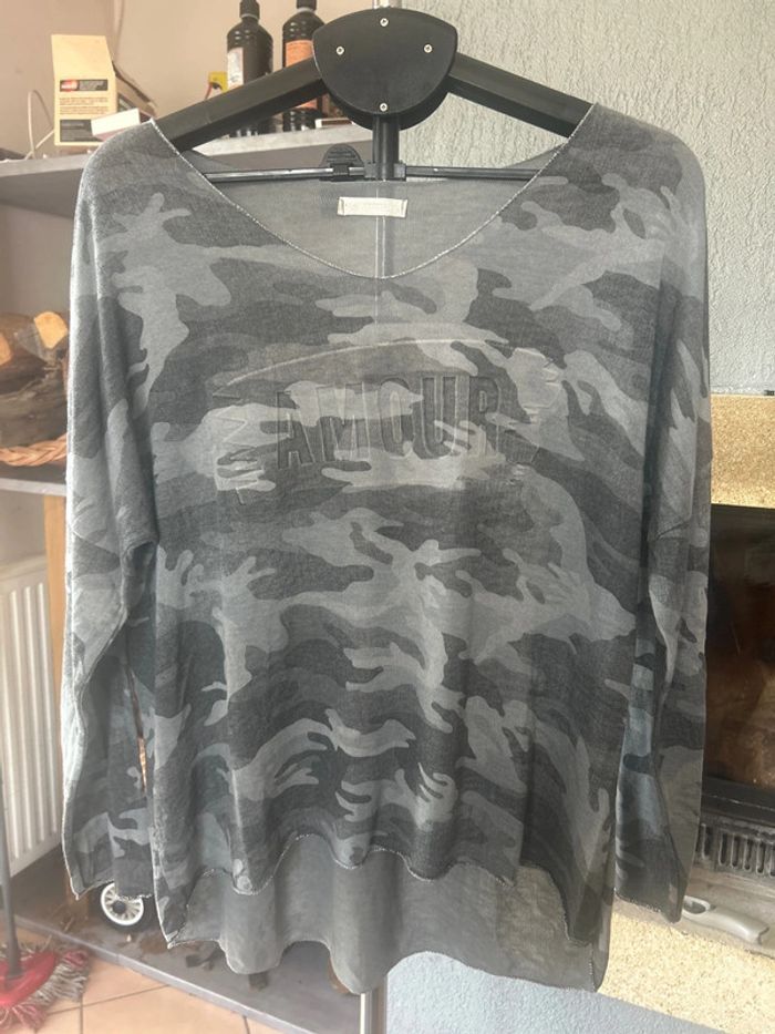 Pull fin camouflage gris - photo numéro 1