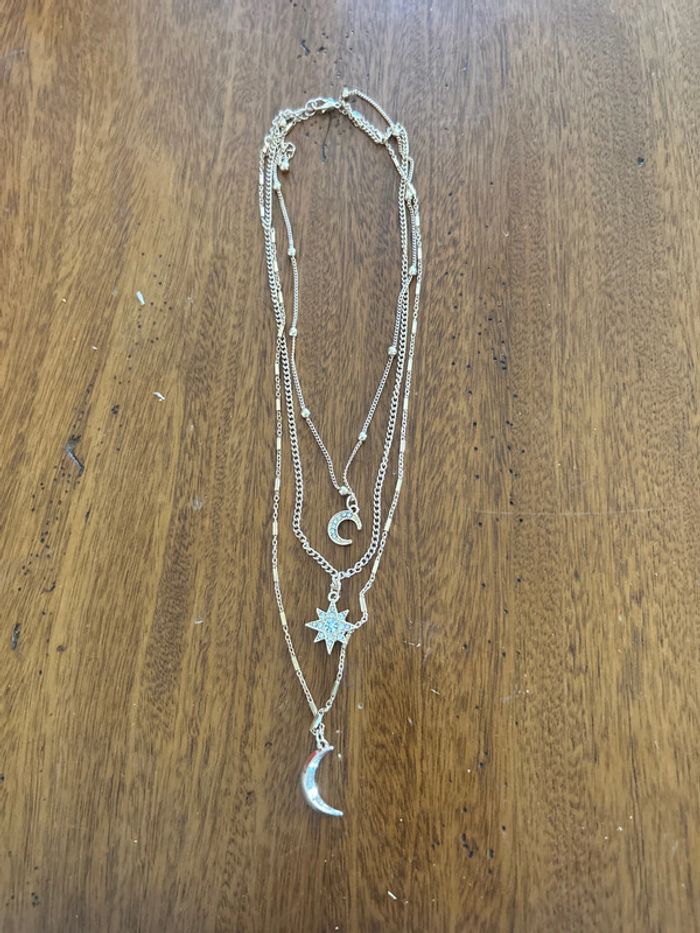 Collier 3 rangs lune et étoile