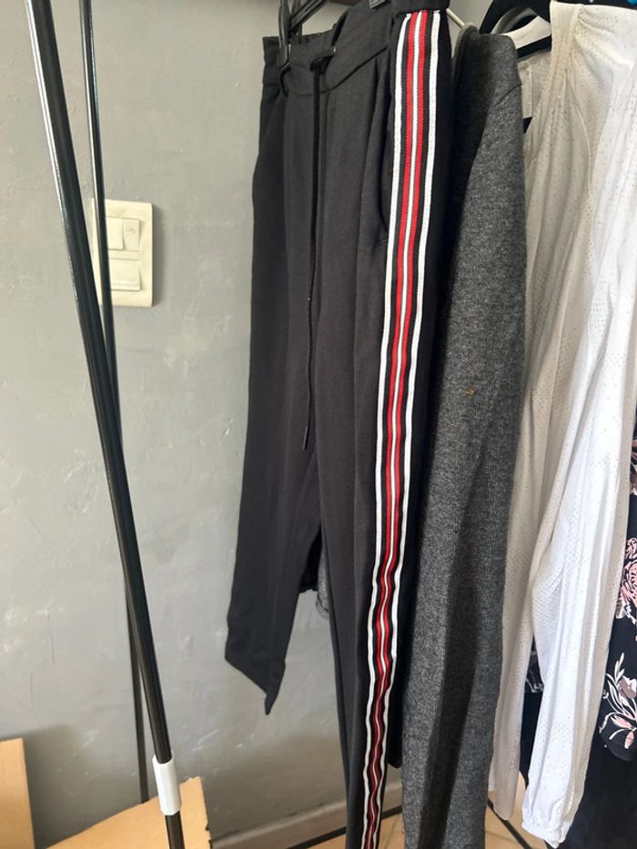 Pantalon noir Only Taille L longueur 30 Bandes couleur sur les côtés