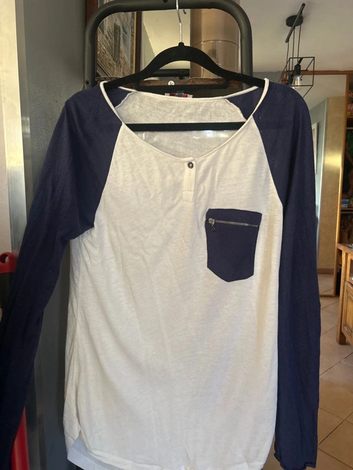 Teeshirt Manches longues Salsa Taille L Blanc et bleu