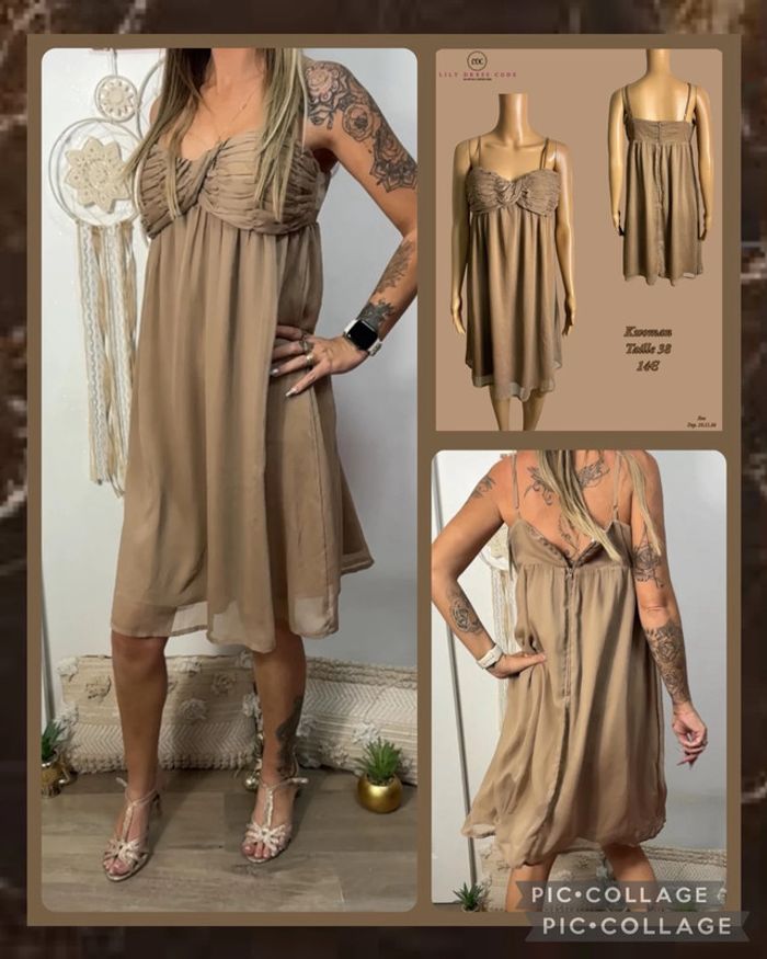 🤎Robe fluide taupe à bretelles kwoman – Taille 38 – SOLDÉ -20% 🤎