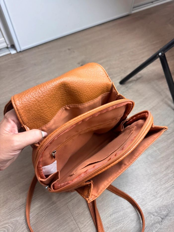 Très joli sac à dos camel en simili cuir grainé, avec fermeture twist argentée sur le rabat et grande poche zippée à l’arrière. Bretelles réglables. Format pratique et tendance, parfait pour un usage quotidien ou en week-end. Look city chic assuré !