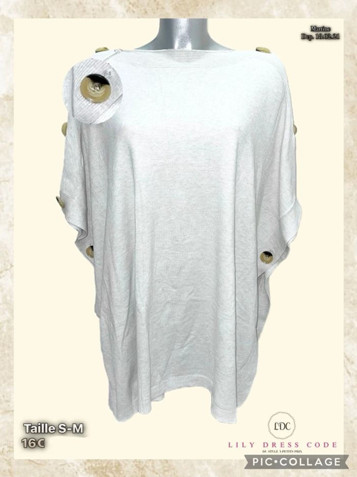 🍦 Poncho pull crème à boutons décoratifs – Taille s-m SOLDÉ -90% 🍦