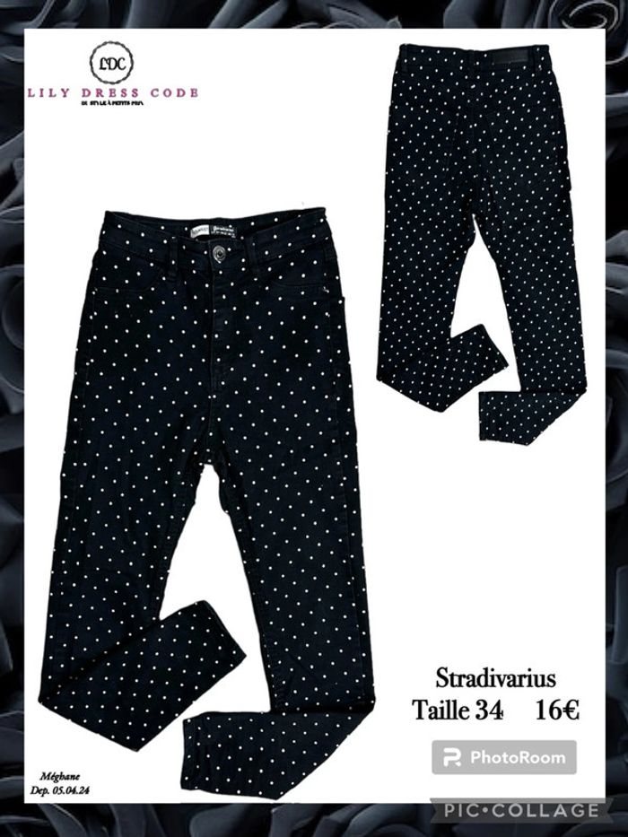Canonissime jean slim noir à pois blancs signé Stradivarius, parfait pour donner du peps à ton look du jour !