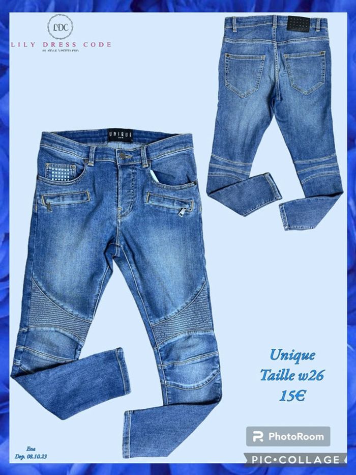 💙 Jean biker bleu Unique – Taille W26 SOLDÉ -50% 💙
