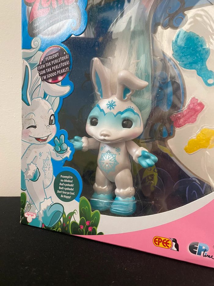 Poupée figurine figure The Zelfs doll Snowflake snow flake flocon de neige lapin rabbit oreilles fée fairy troll hair cheveux brushable little universe small animal pet accessories clips new in box neuf en boîte non opened open jamais ouvert perlowy epee hasbro mattel mga zelicious trolls Wapikii