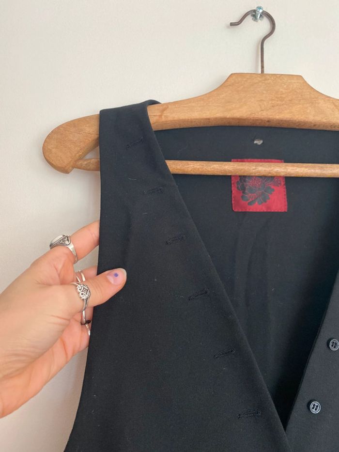 Robe Cop Copine, taille S 36 Combishort combi short combinaison salopette courte jumpsuit asymétrique asymetrical little black noir bretelles sans manches toile uni habillée office core matière blazer boutons taille haute shorts haut hauteur genou jolie découpe boléro costume suit poches pockets masc bureau arrondi flatteur unique concept archive orginal stunning droit straight confort confortable monochrome mi saison casual chic habillée layer layering monochromatic fashion mode model streetwear street artwear art y2k 00s 90s 2000 1990 nineties top haut lignes lines surpiqûre surpiqué ref tiret trait dégradé camaïeu feuilles feuillage bourgeon tige pétales petal resille graphic graphique Made in France Paris modèle Ombre en coton désign designer studio ajouts craft études personnage silhouette anglais jersey élastique élasthanne pièce forte charme caractère marquant maîtresse outstand outstanding strong embroidered broderie brodé patch patchwork bi matière artwear art Custo Barcelona Gaultier layer Playboy Miss Sixty Miss Side Car Save the Queen Xanaka Portugal Britto vibe core aesthetic layering Wapikii