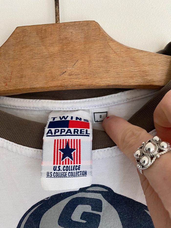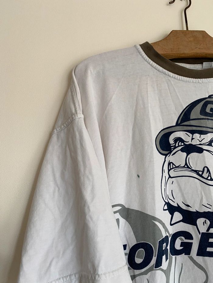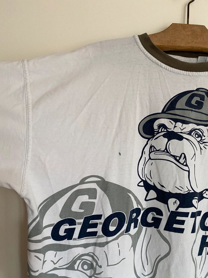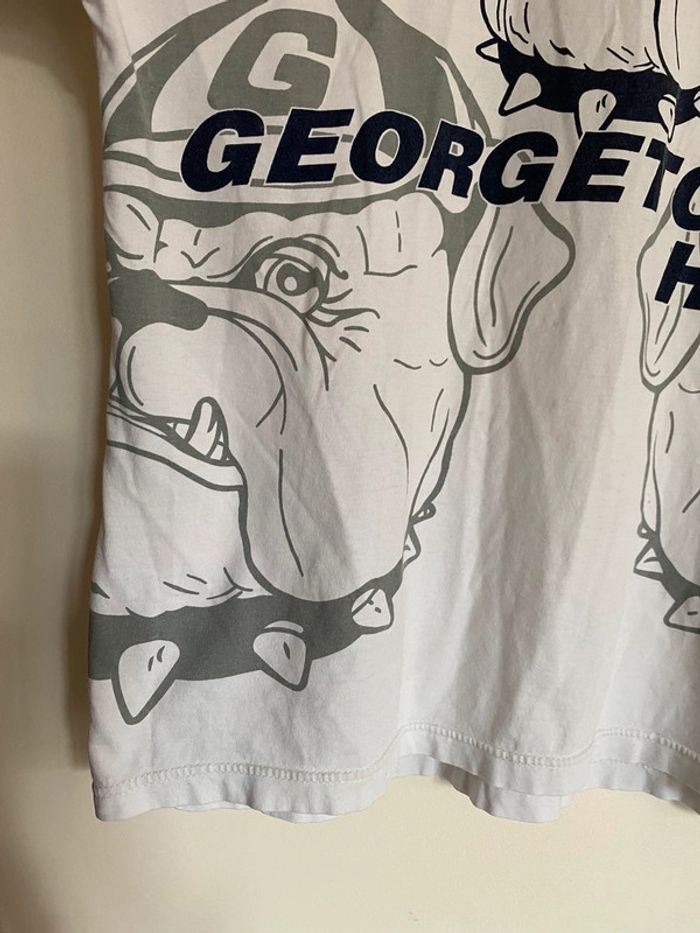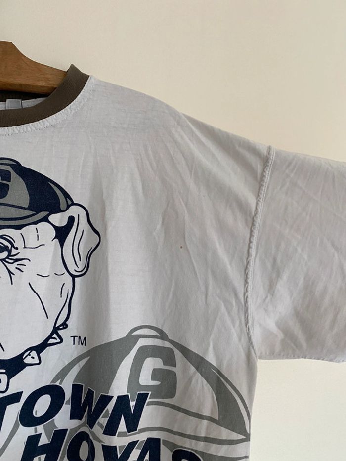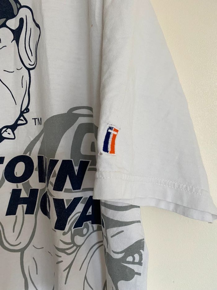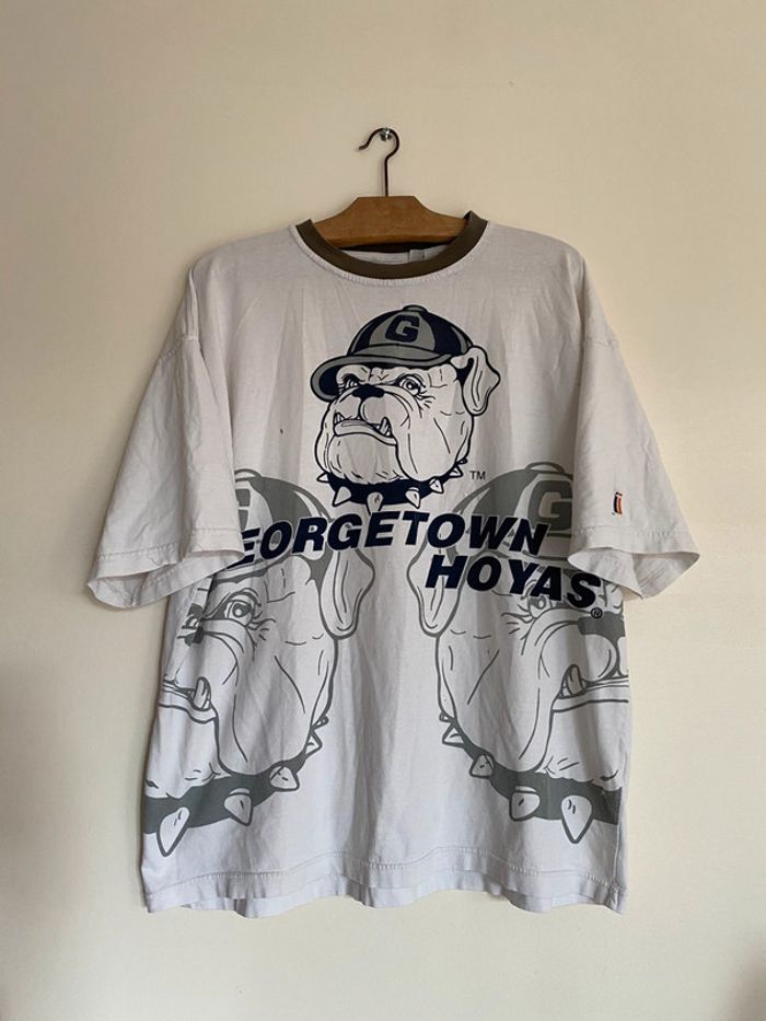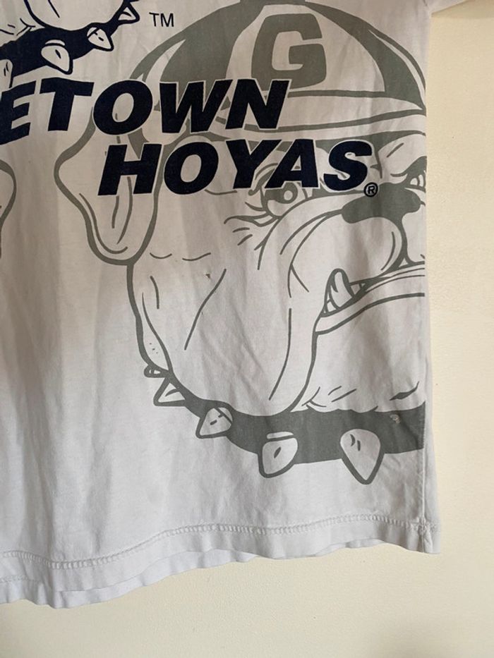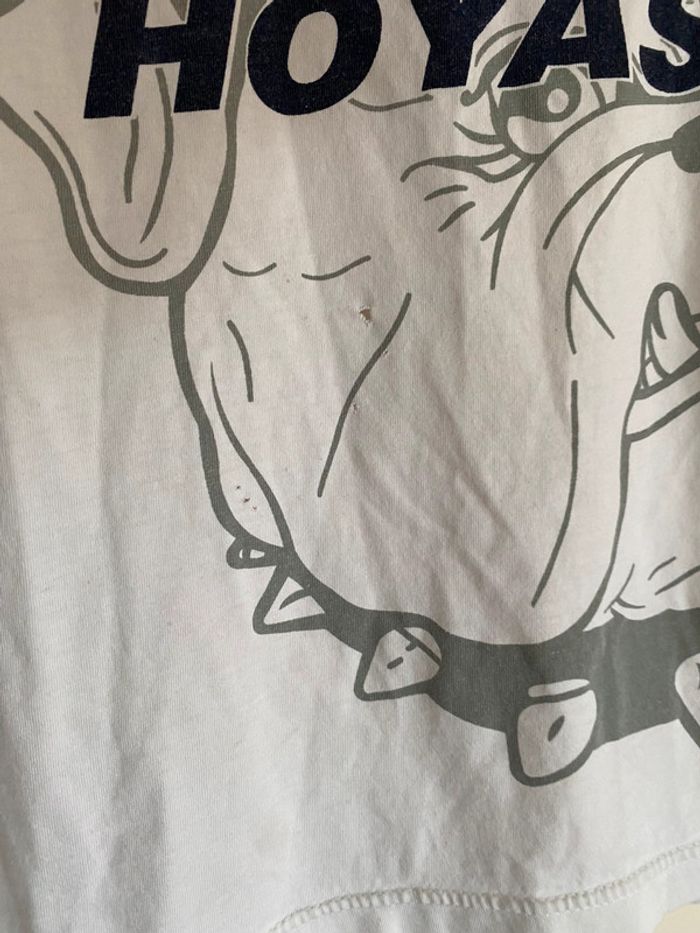 T-shirt Georgetown Hoyas NBA, taille S Taille plutôt comme M Vintage tee Twins twin Apparel US college Starter Official original licence licenced product équipe ball team basketball basket ball collector collection logo brodé broderie chien dog bulldozer cap hat jersey ballon casquette broderie embroidering embroidery 90s officiel rare hard to find nineties année 90 USA Multiples défauts : nombreux trous et taches Wapikii