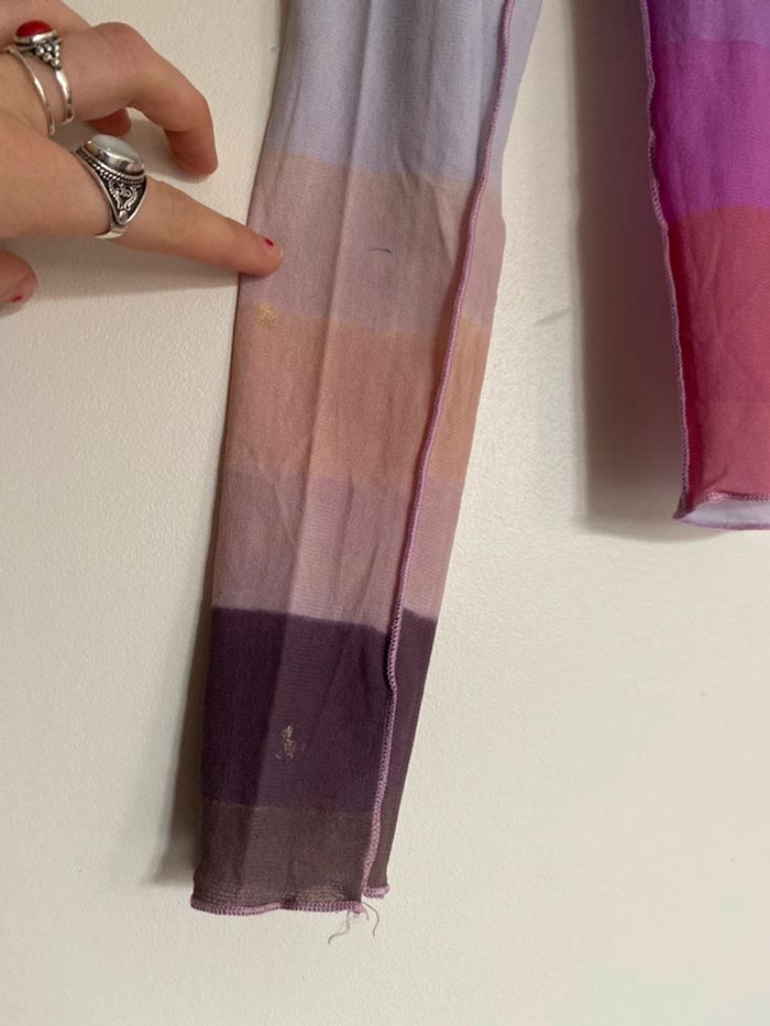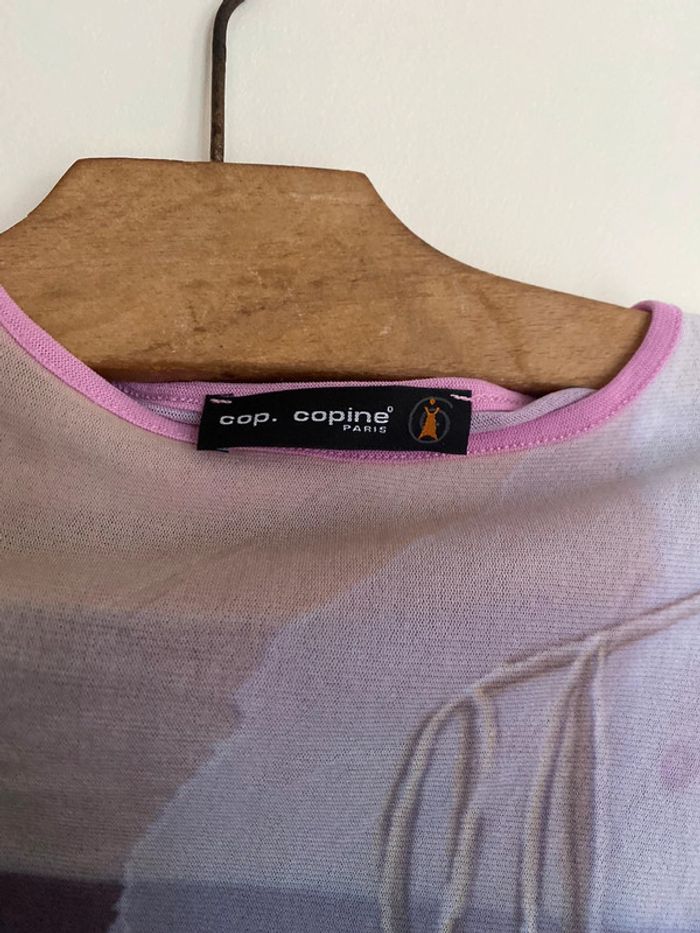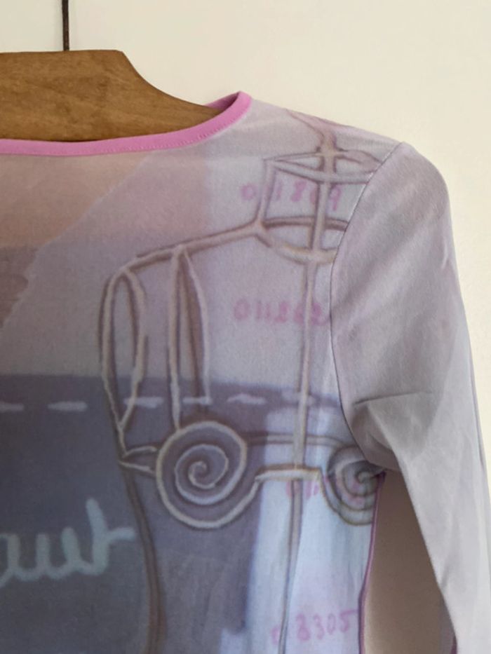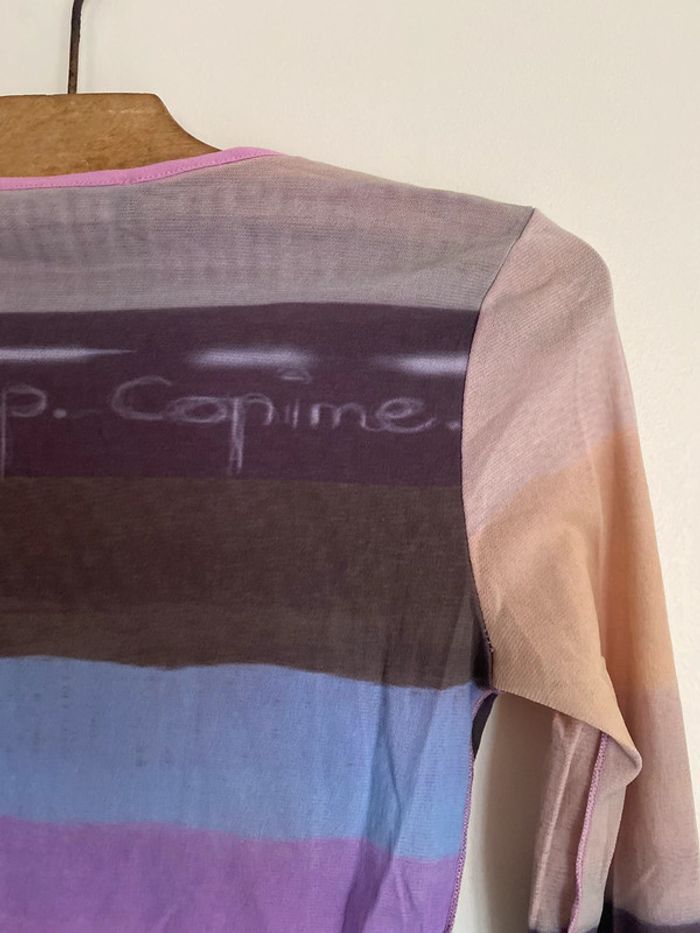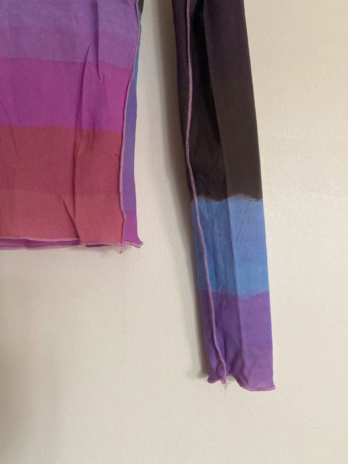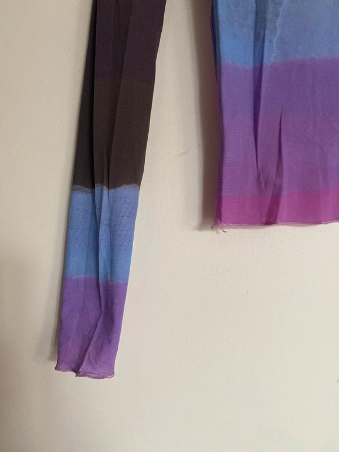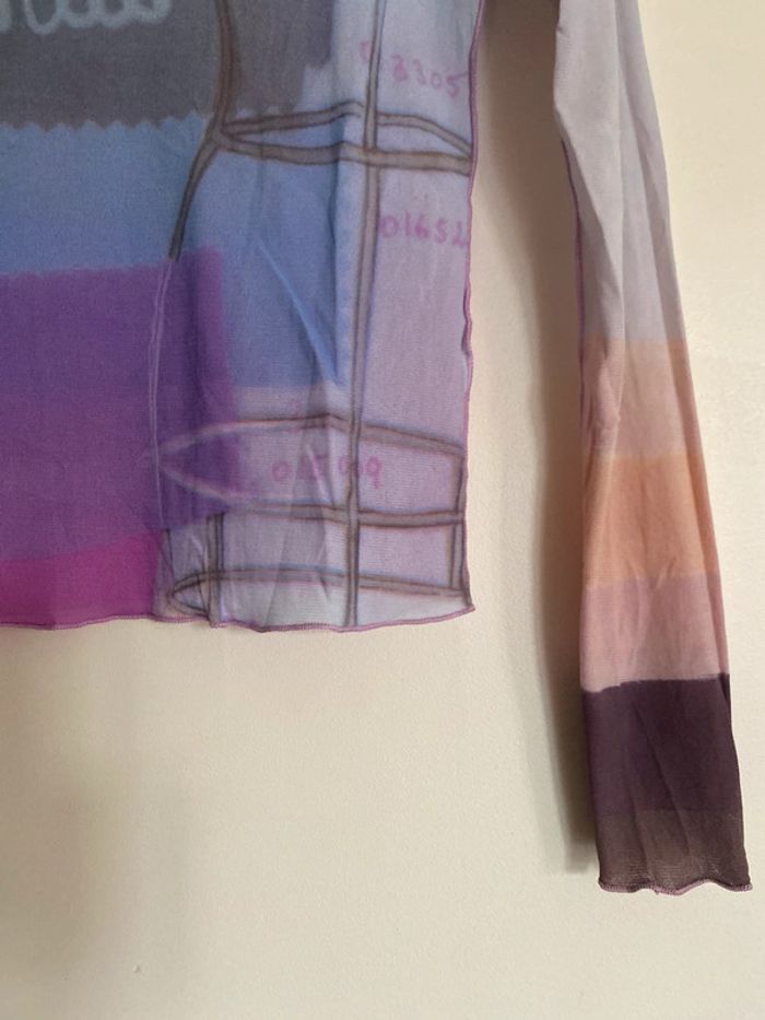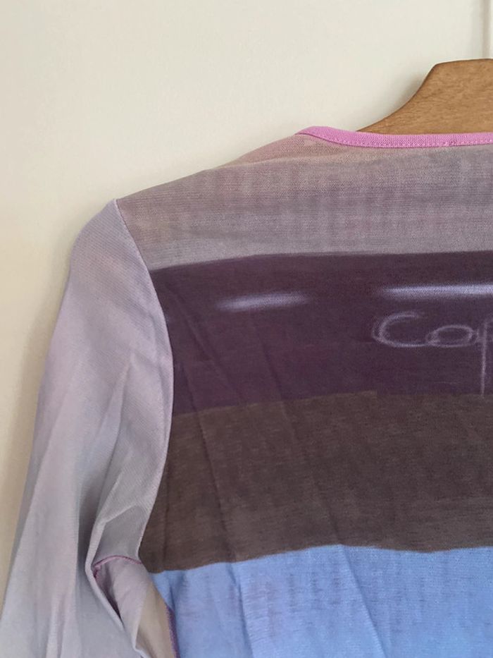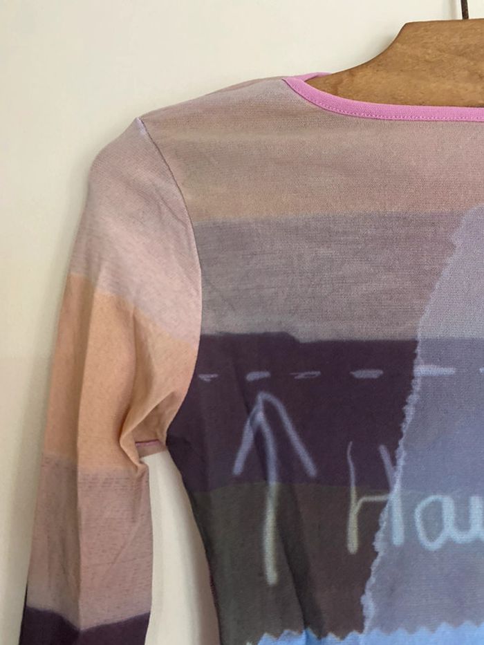 Haut Cop Copine Paris, taille S Made in France Défaut : petite trace de stylo arrière manche droite bariolé mesh elasthanne transparent fluide col rond motif effet flou couture buste mannequin fashion mode model rayé rayures stripes street streetwear drawing draw dessin artwear art manches longues long sleeves imprimé y2k 00s 90s 2000 1990 nineties flèche arrow top haut lignes lines taille size mesures measures surpiqûre surpiqué ref tiret trait dégradé camaïeu col rond spirale style stylist stylism school Made in France Paris modèle Ombre en coton Motif imprimé écriture phrase prénoms col rond plongeant asymétrique original 3/4 mi-long Nadia Stéphanie Sophie Johanna patry Paloma Ben orange empiècement surpiqué surpiqûres texte réversible peut se porter des deux côtés mots fleur coeur multicolore unique studio ajouts craft études personnage silhouette espagnol anglais jersey élastique élasthanne pièce forte charme caractère marquant maîtresse outstand outstanding strong embroidered broderie brodé patch patchwork bi matière artwear art Custo Barcelona Gaultier layer Playboy Miss Sixty Miss Side Car Save the Queen Xanaka Portugal Britto vibe core aesthetic layering Wapikii