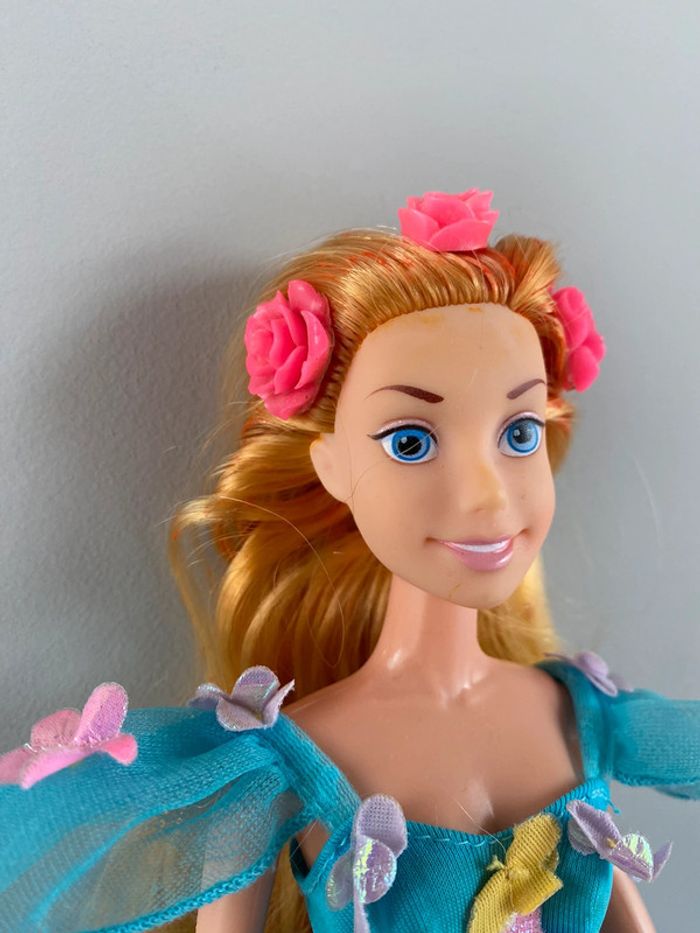 Poupée mannequin barbie Disney hasbro simba Giselle enchanted il était une fois princess avec robe barbie vintage songbird vintage film movie doll bendable legs Cheveux qui ont été colorés à la craie à nettoyer